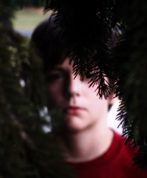 Aug. 19th, 2005 12:01 amThe clouds were insane today, and many pictures were taken of them, but alas, my favorites were these two, Ethan through some pine branches which I Photoshopped a bit and then this view of my back yard. No, my back yard is not really that creepy looking, even though there is a cemetery there.